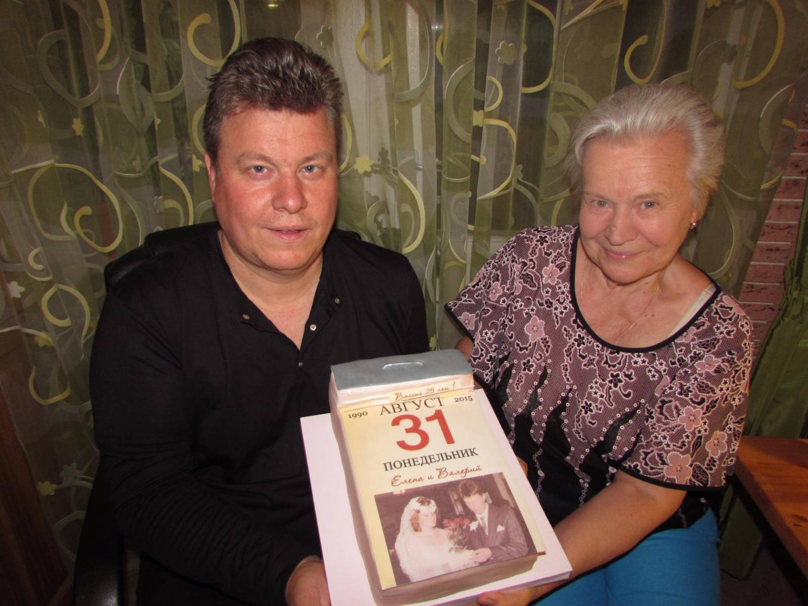 Демонстрируют торт на нашу серебряную свадьбу.